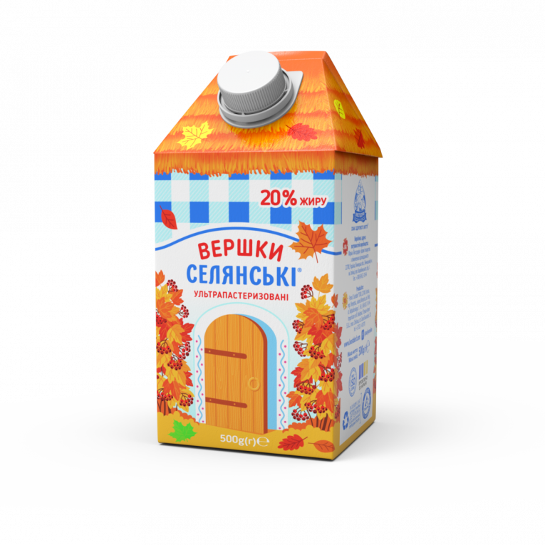 Вершки ультрапастеризовані ТМ «Селянські», 20 % жиру, 500 г